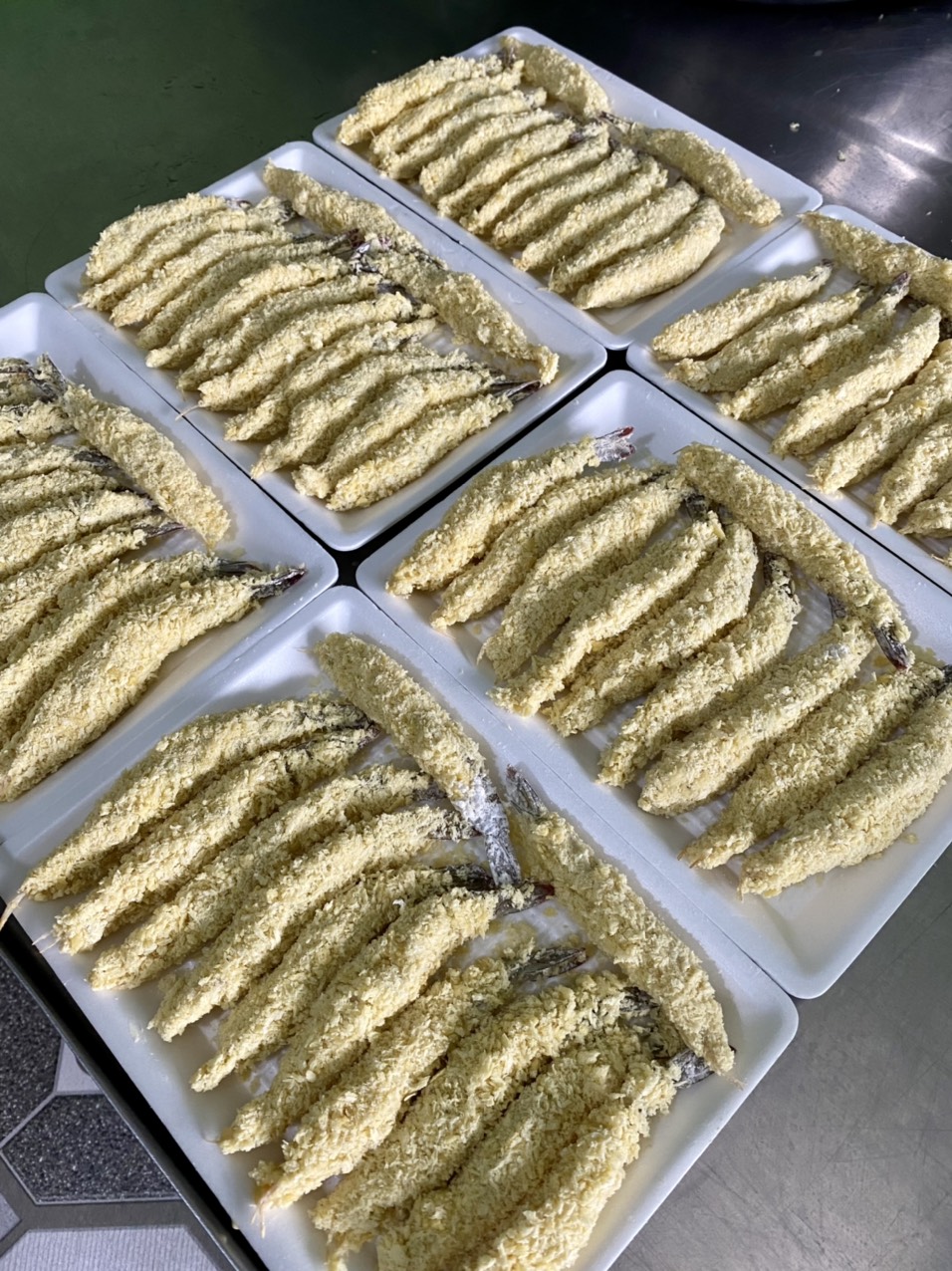 | 08-01-2024 12:01:00 | Pha, trộn nguyên liệu / thành phần | Sau khi trộn đều bột ướt sẽ nhúng tôm và và vớt ra, tiếp theo nhúng vào bột xù và sắp vào khay | Hoàn thành | |