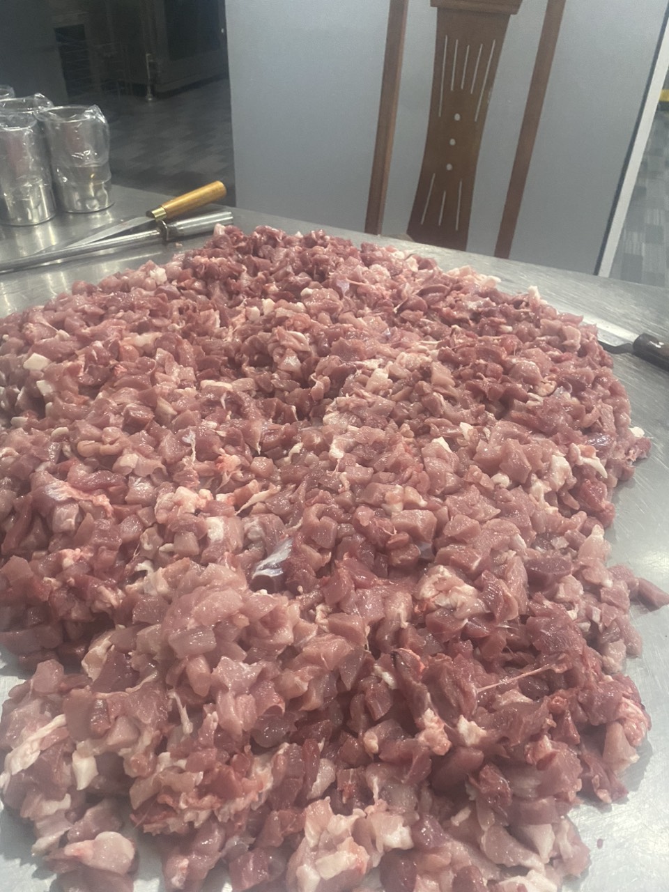 | 09-06-2024 12:06:00 | Vùng nguyên liệu | B1. Nhập nguyên liệu Lấy thịt lợn từ lò mồ Kỳ Bắc. Thịt lợn được lấy tại lò mổ có dấu kiểm định của cơ quan chức năng. Thịt lợn tươi, đảm bảo an toàn vệ sinh thực phẩm | Hoàn thành | |