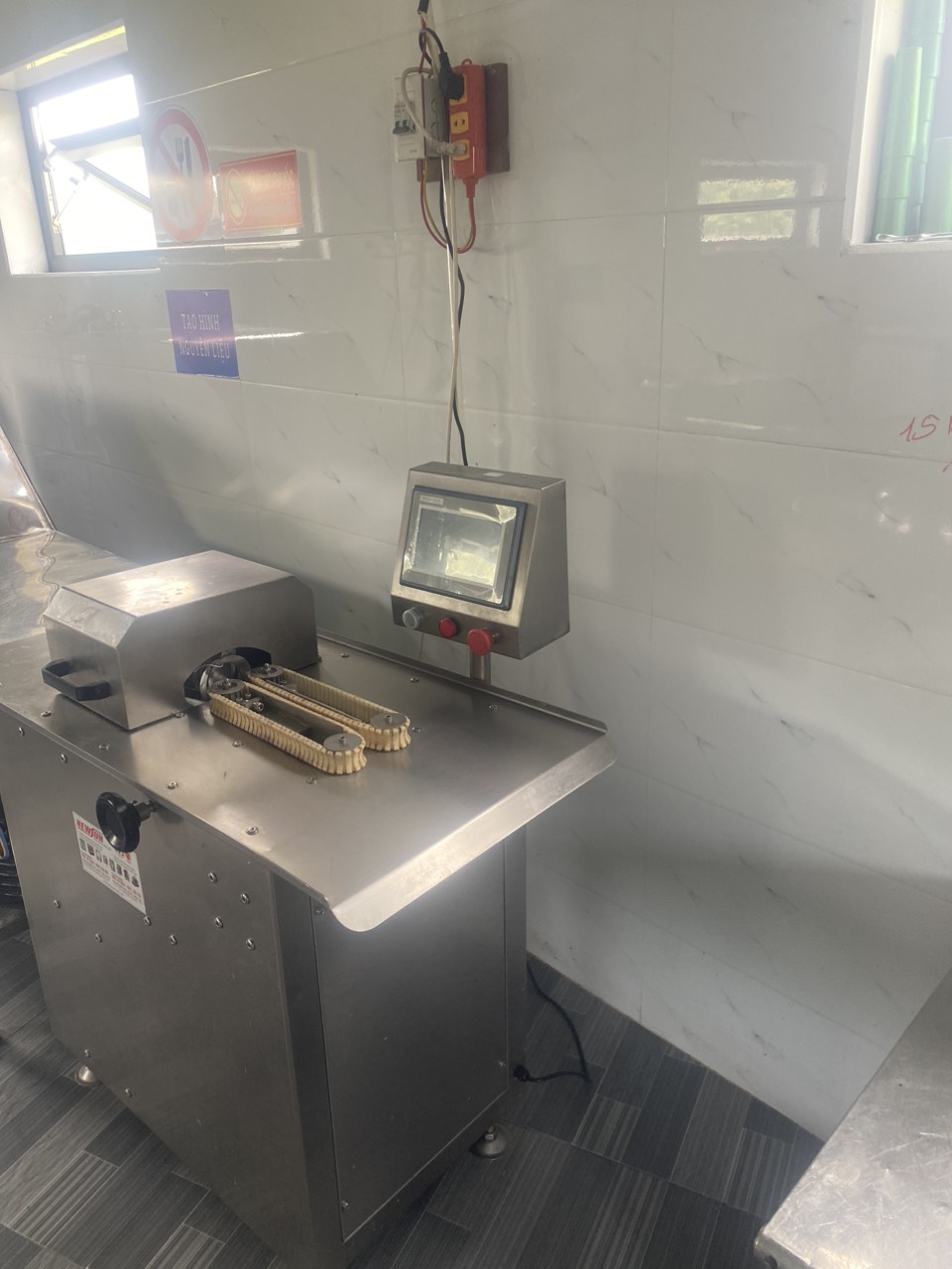 | 09-06-2024 12:06:00 | Đùn xúc xích | B7. Đùn xúc xích Nguyên liệu sau khi xay nhuyễn được đưa vào máy đùn. Đùn xúc xích phải được thực hiện đồng bộ sao cho xúc xích đùn ra có độ đồng đều, không quá lỏng, không quá căng cứng dẫn đến hiện tượng nứt vỏ colagen khi hấp chín. | Hoàn thành | |