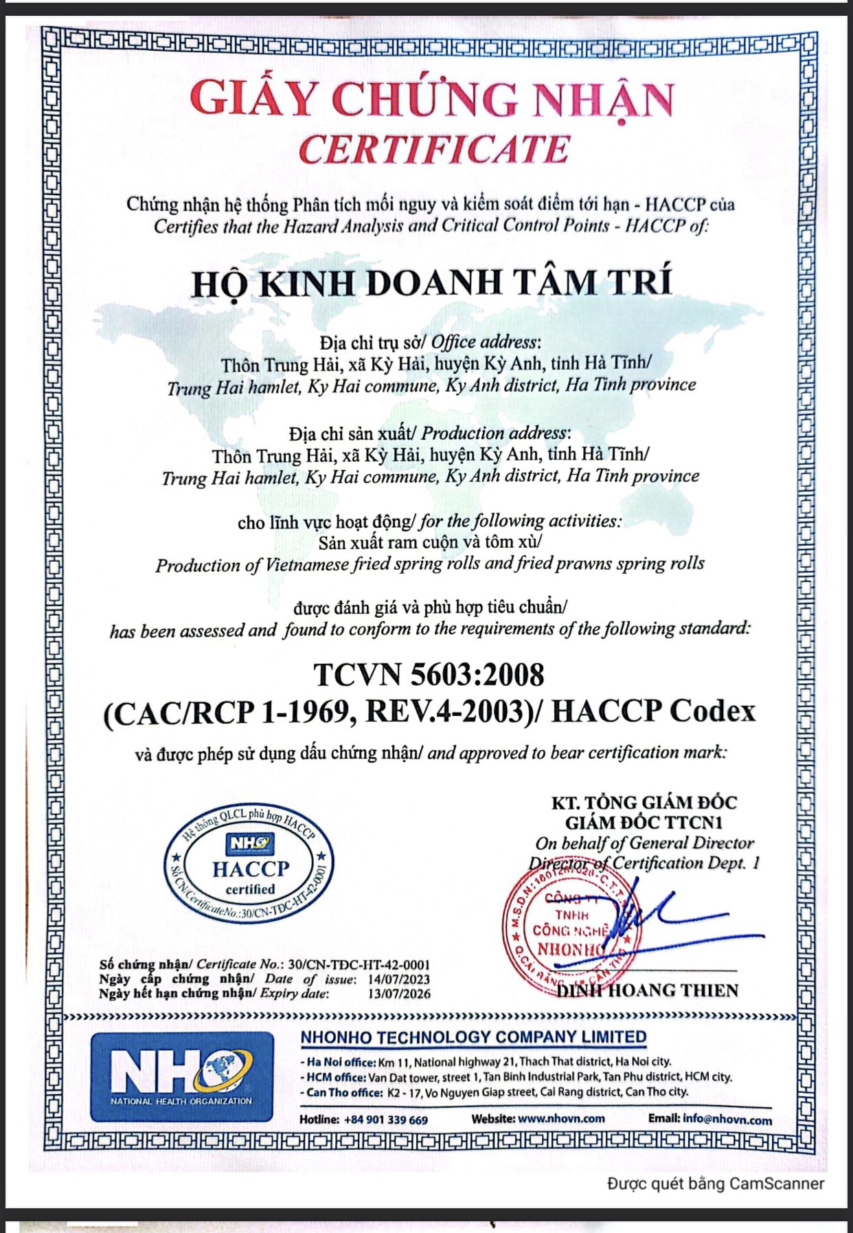 14-07-2023 12:07:00 Giấy chứng nhận Cơ sở được cấp giấy chứng nhận đạt tiêu chuẩn Haccp Hoàn thành