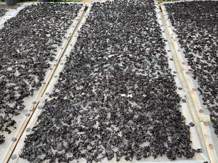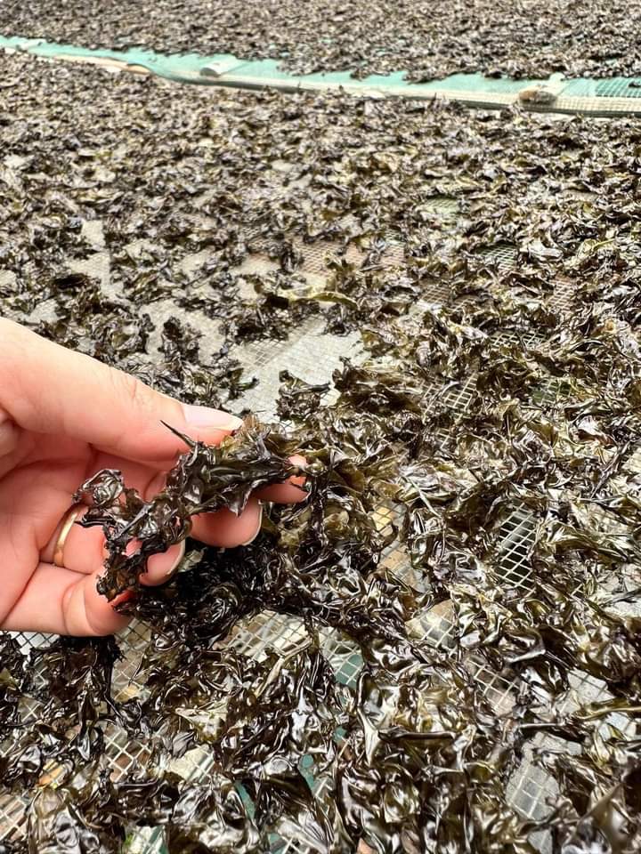 09-01-2024 12:01:00 Sơ chế nguyên liệu Rong biển sau khi thu hái về sẽ được đãi sạch cát, sau đó vắt khô nước và đưa lên giàn phơi khô. Hoàn thành