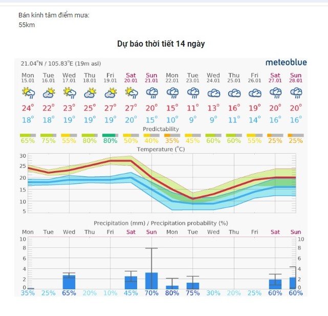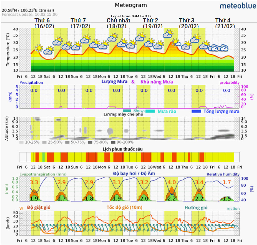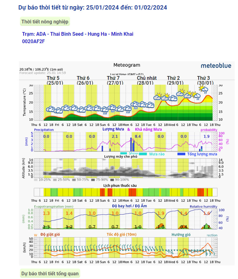25-01-2024 12:01:00 Kiểm tra đồng ruộng Theo dự báo của trạm thời tiết iMetos đặt tại Hưng Hà dự báo cho Vùng Thái Bình tham khảo dự báo thời tiết cho 7 đến 14 ngày tới Hoàn thành