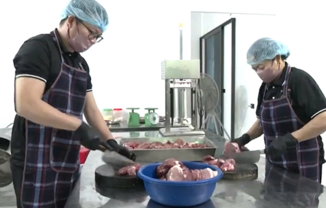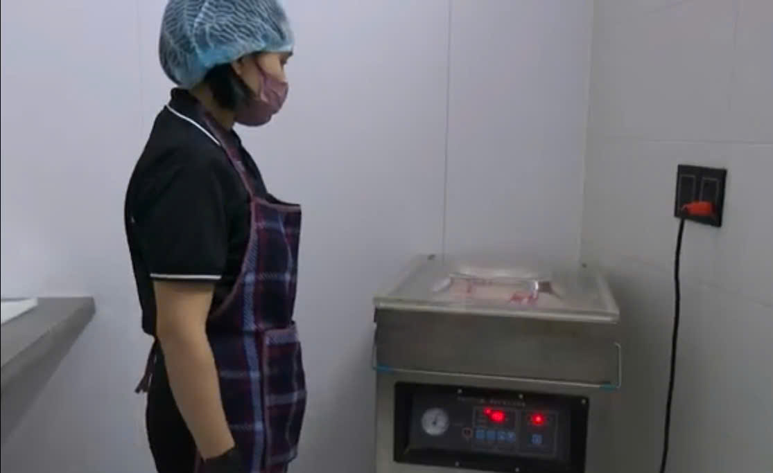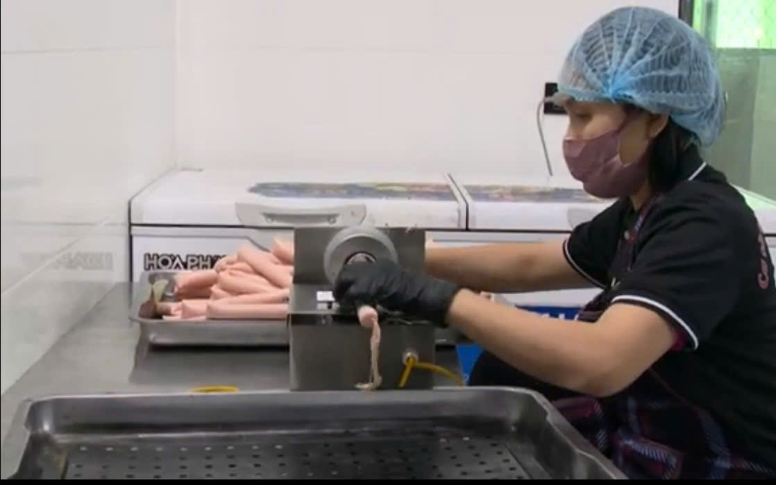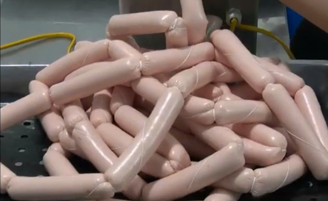 | 06-06-2025 12:06:00 | Đùn xúc xích | Các mẻ đùn được đưa vào hệ thống máy buộc chỉ định lượng bán thủ công, kích cỡ xúc xích được điều chỉnh cố định từ đầu theo ý muốn. Sau khi đùn phải đưa vào bảo quản tủ mát từ 2-4 °C. Xúc xích sau khi buộc chỉ được đưa vào từng khay inox để sắp xếp. Các khay không được để quá nhiều, xúc xích phải được sắp xếp sao cho hơi có thể chín đều trên toàn bộ khay. Nhiệt độ ban đầu là hấp ở 85 °C trong thời gian 5 phút. - Sau đó hấp ở nhiệt độ 80 °C trong thời gian 20 phút. Kiểm tra định kỳ mẻ hấp trong quá trình hấp. | Hoàn thành | |