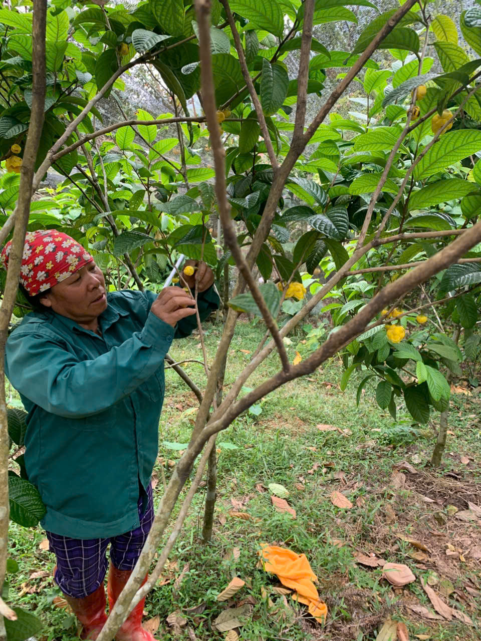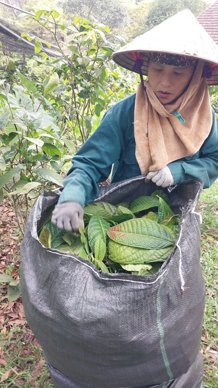 | 04-08-2025 12:08:00 | Thu hoạch | Tiếp tục tiến hành thu hoạch lá Trà hoa vàng Hakodae. Thu hoạch thủ công bằng tay, lựa chọn lá bánh tẻ màu xanh đậm, sáng và mặt lá có độ láng, lá còn nguyên vẹn, không bị nhiễm sâu bệnh hại. Sau khi thu hoạch sẽ được vận chuyển gom tập chung tại khu 1 để tiến hành phơi sấy thủ công. Thời tiết tại thời điểm thu hoạch: trời nắng nóng 36 - 39 độ C, nhiệt độ cảm nhận 45 độ C độ ẩm không khí 61%. Tổng khối lượng lá tươi thu được: 72kg | Hoàn thành | |