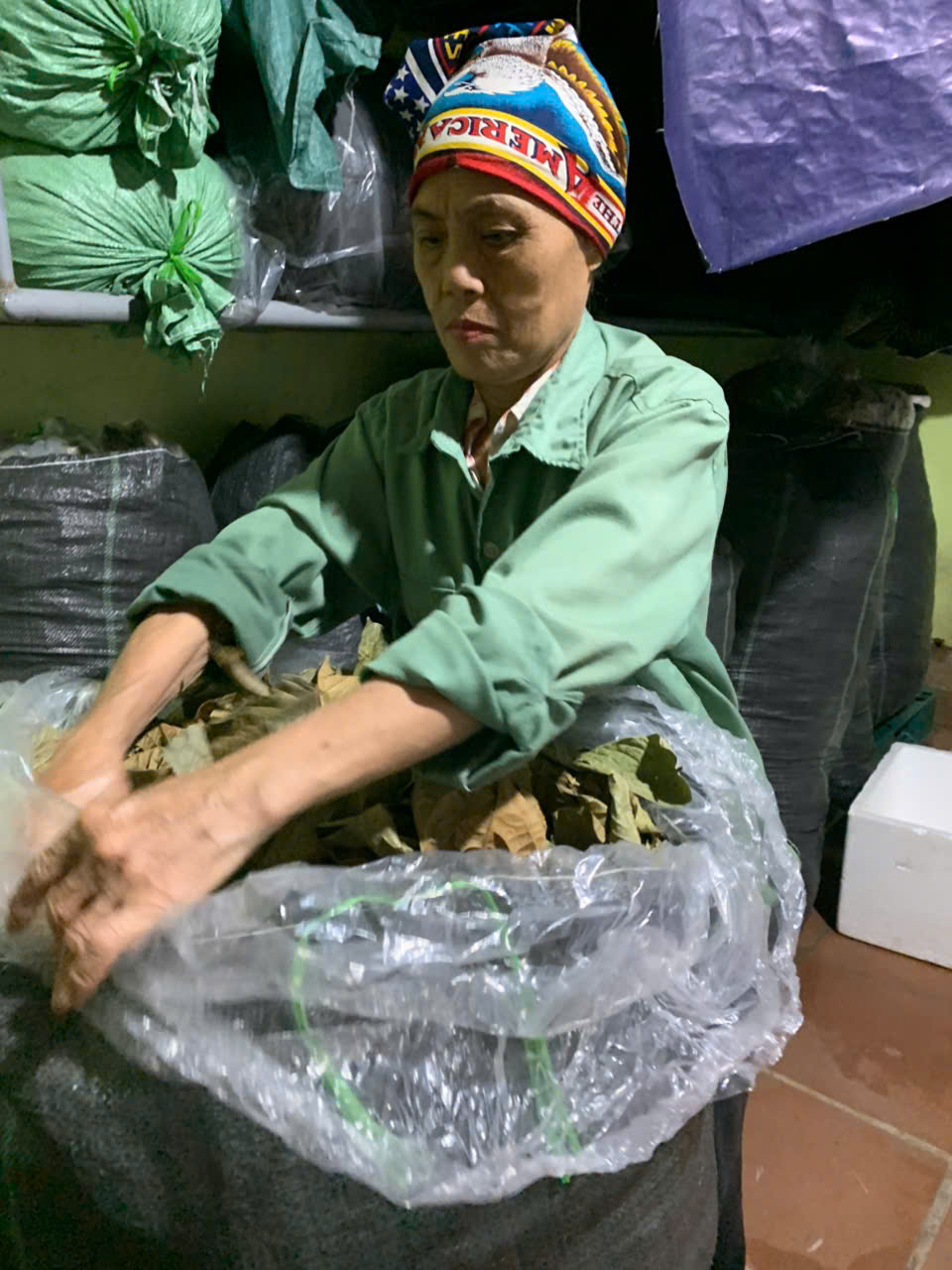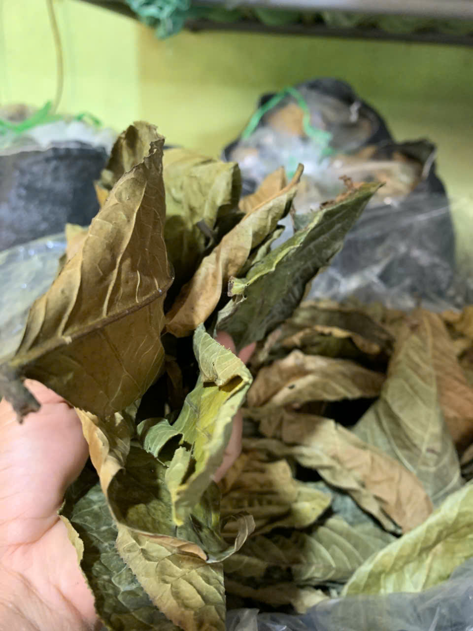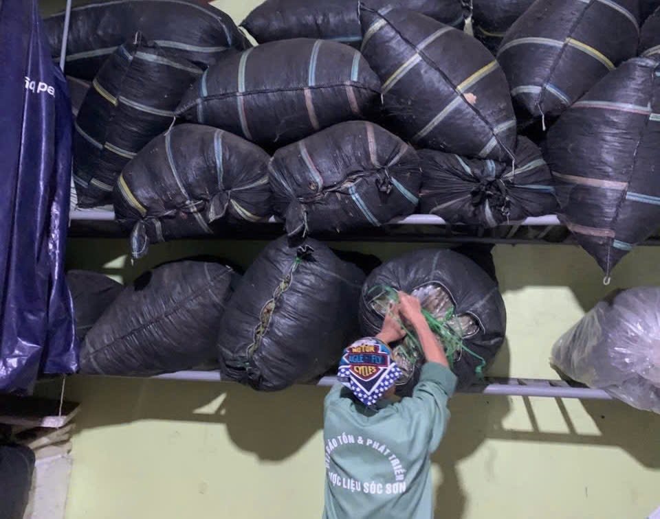 | 18-09-2025 12:09:00 | Nhà kho bảo quản | Nhập kho tổng khối lượng thu hoạch lá Trà hoa vàng sau các đợt thu hoạch là: 30 (Kg). Lá trà được đóng trong bao nilon trong suốt và đựng trong bao tải dứa rồi xếp lên giá riêng biệt trong kho chứa dược liệu. | Hoàn thành | |
