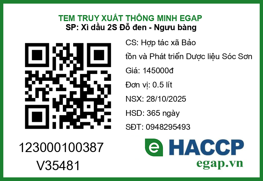 | 28-10-2025 12:10:00 | Tem Qr Code eGap | TRích xuất và dán Tem Qr eGap minh chứng quá trình sản xuất | Hoàn thành |