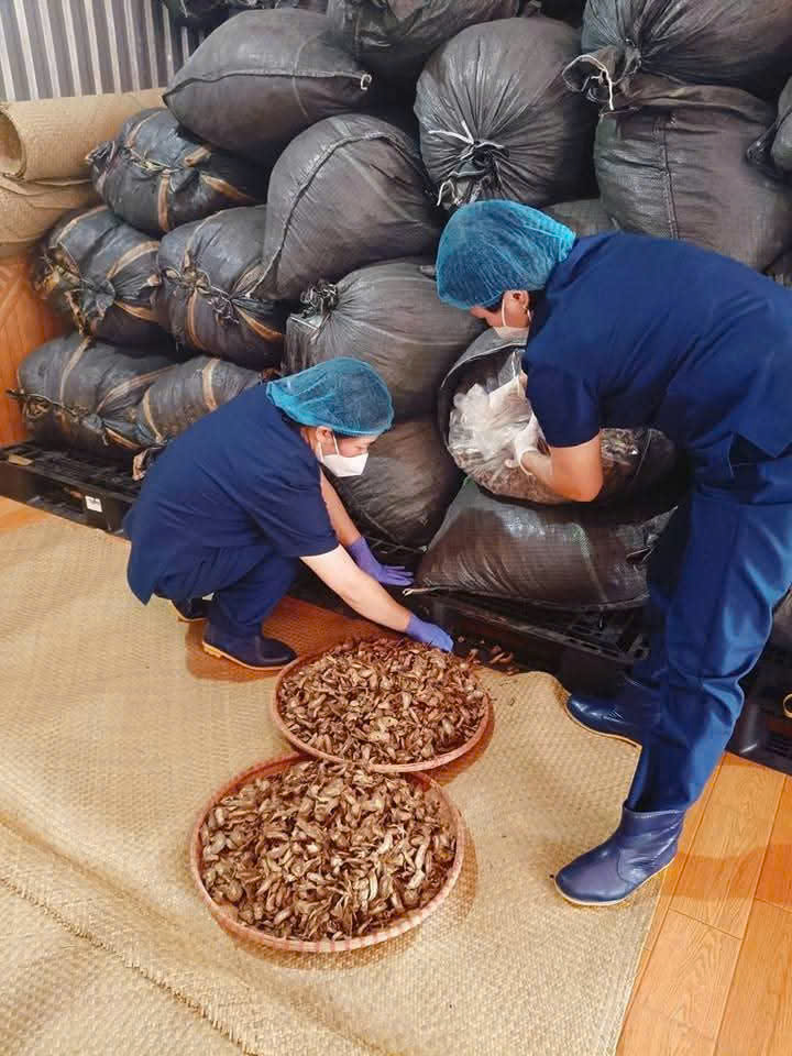 | 03-07-2025 12:07:00 | Sơ chế nguyên liệu | Nguyên liệu sau khi thu hái, được chọn lựa, sơ chế qua (Củ Ngưu Bàng) sẽ được tận dụng phơi tối đa dưới ánh nắng mặt trời để đảm bảo giữ được độ màu, mùi và vị của nguyên liệu. Đối với củ ngưu bàng, trước khi đem cất giữ và bảo quản, sẽ được đem vào lò sấy đến độ ẩm nhất định rồi mới đóng bao bì nhằm hạn chế ẩm mốc xuất hiện. | Hoàn thành | |
