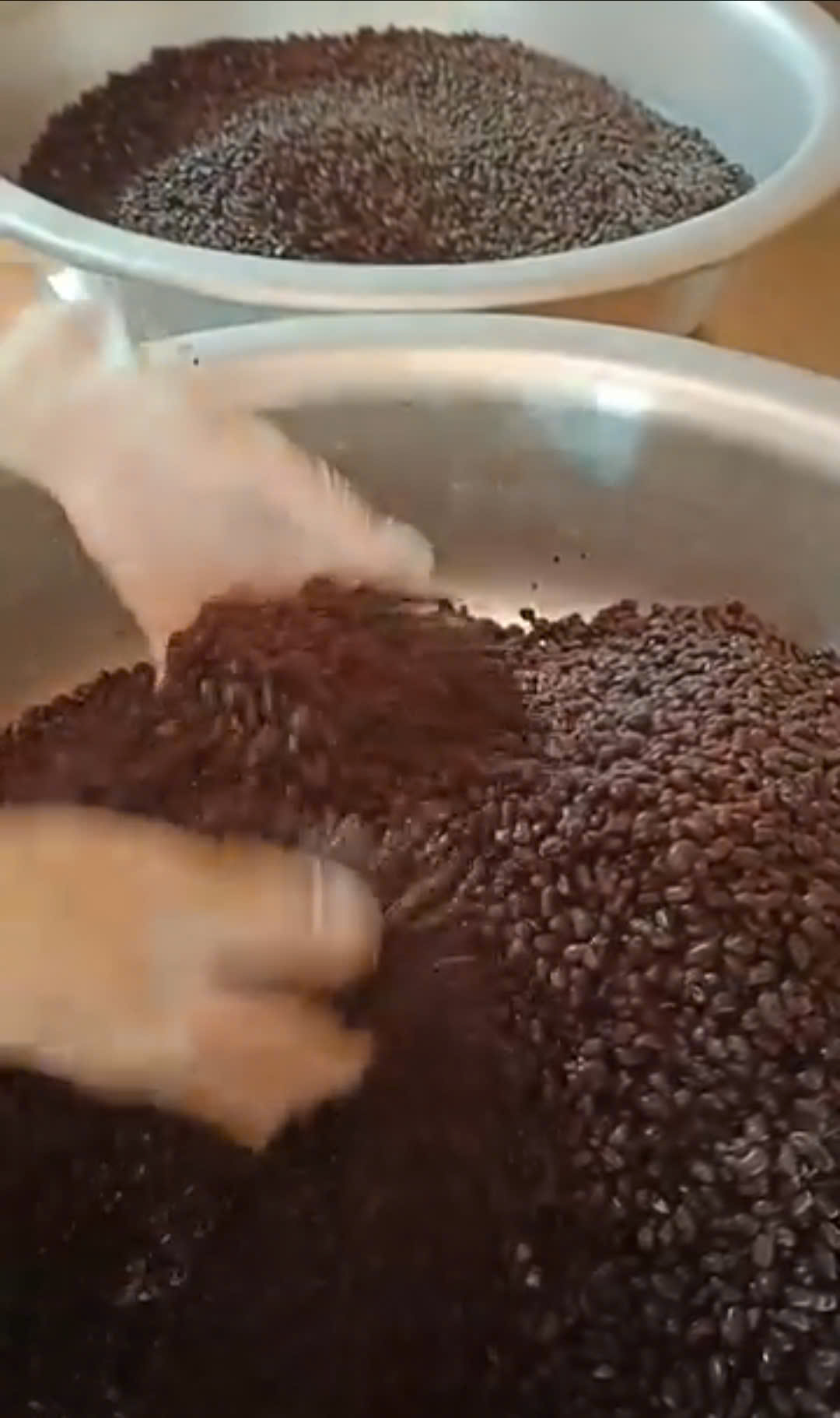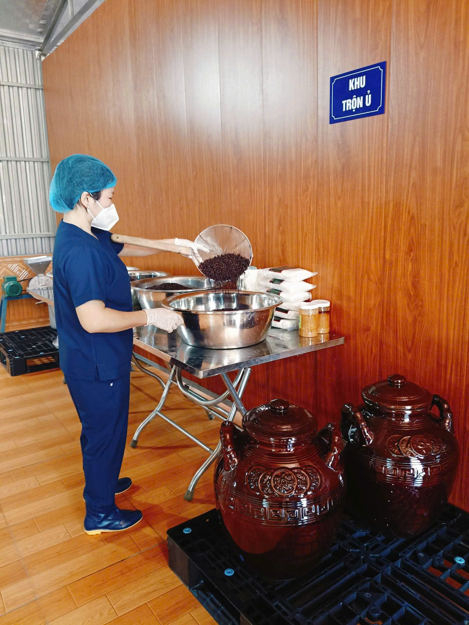 | 10-07-2025 12:07:00 | Pha, trộn nguyên liệu / thành phần | Khâu trộn các nguyên liệu thành phần trước khi đem đi ủ lên men (Củ Ngưu Bàng trước khi đem làm nguyên liệu sẽ được xay thành bột). Toàn bô quy trình đều được làm thủ công bằng tay. | Hoàn thành | |