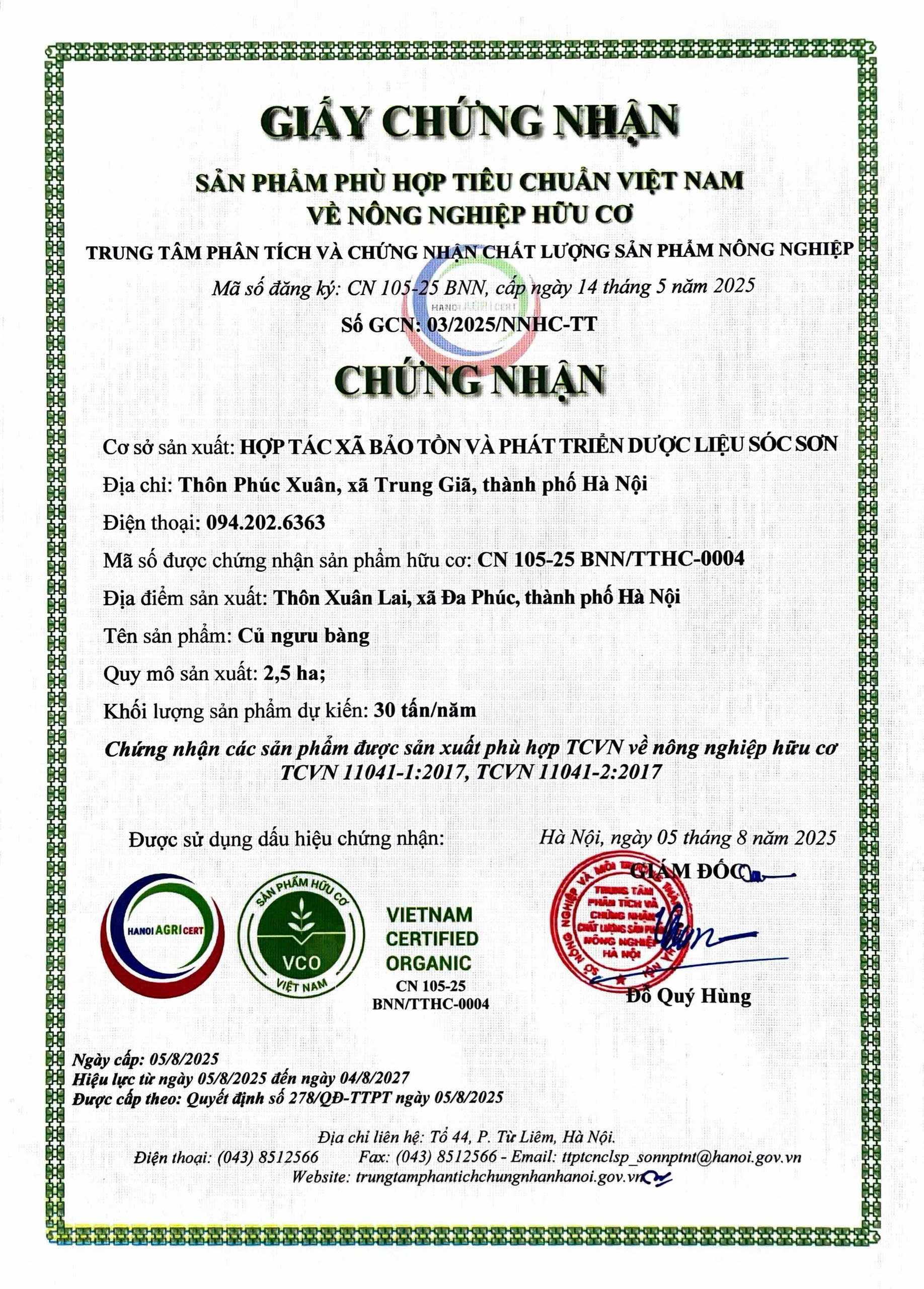 | 02-07-2025 12:07:00 | Vùng nguyên liệu | Vùng nguyên liệu trồng Ngưu Bàng tại Xuân Thu - Đa Phúc - Hà Nội. | Hoàn thành | |