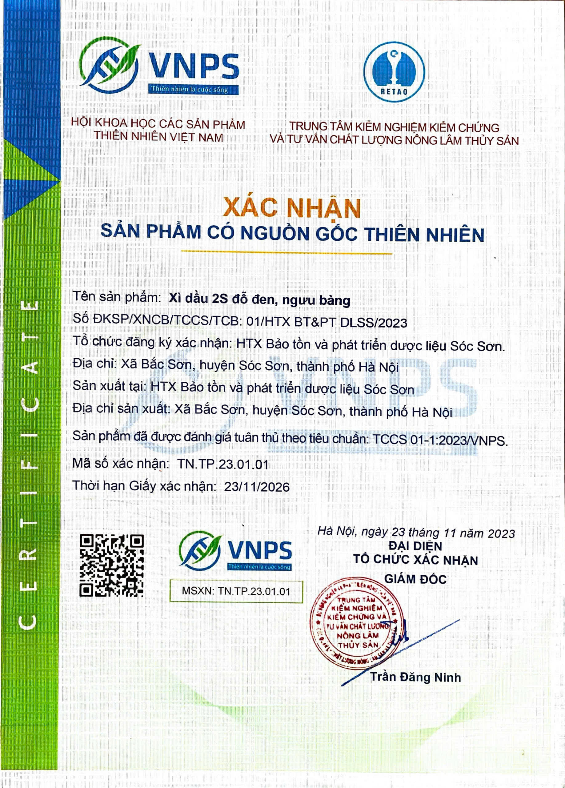 | 05-07-2025 12:07:00 | Kiểm tra chất lượng nguyên liệu đầu vào | Nguyên liệu để sản xuất xì dầu 2S gồm: Nước, đỗ đen (200g/l), ngưu bàng (60g/l), muối, đường thốt nốt, trà hoa vàng. Hai thành phần chính là đỗ đen và ngưu bàng được trồng theo hướng hữu cơ và thu hái từ Vườn dược liệu Sóc Sơn. | Hoàn thành | |