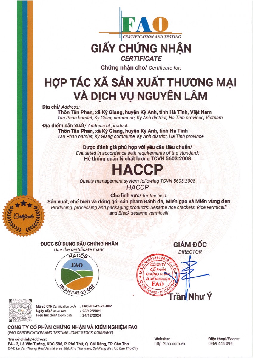 Hợp tác xã sản xuất thương mại và dịch vụ Nguyên Lâm : FAO-HT- 42-21-002