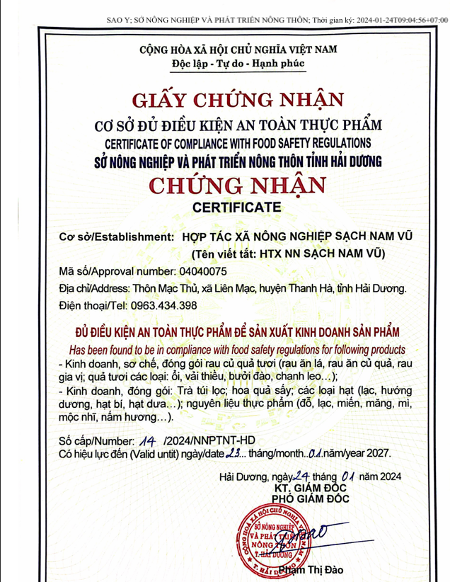 Hợp tác xã Nông nghiệp sạch Nam Vũ : FAO-VG-TT-30-21-20