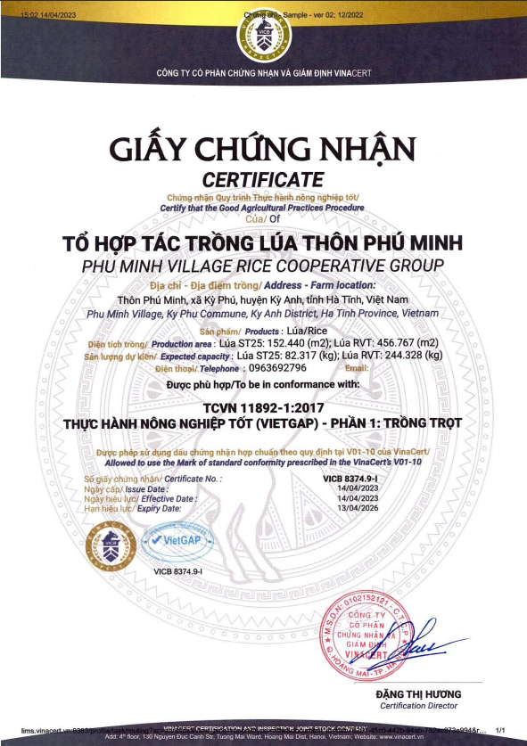 | Cơ sở sản xuất | Hợp tác xã dịch vụ nông nghiệp Kỳ Phú |
