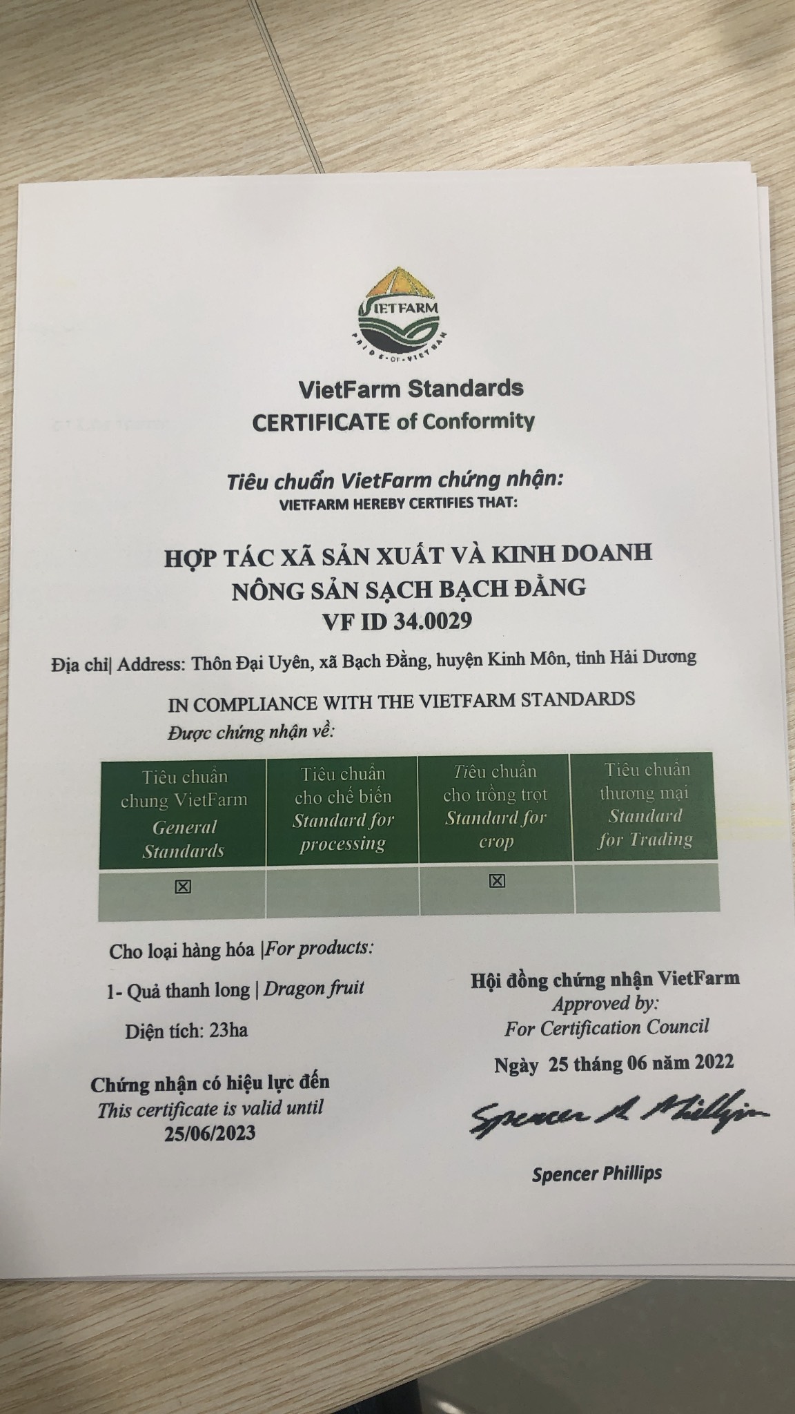 | Chứng chỉ | VF ID 34.0029 |