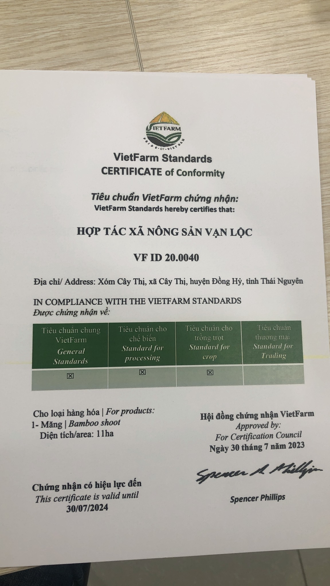 | Cơ sở sản xuất | HTX Nông sản Vạn Lộc |