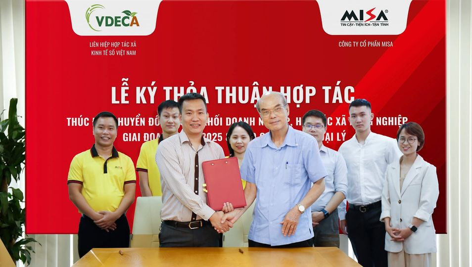 Ngày 06/07/2023, Công ty Cổ phần MISA (MISA) và Liên hiệp Hợp tác xã Kinh tế số Việt Nam (VDECA) đã ký kết hợp tác thúc đẩy chuyển đổi số cho các doanh nghiệp, hợp tác xã, hộ, cá nhân kinh doanh trong lĩnh vực nông nghiệp giai đoạn 2023 - 2025.
